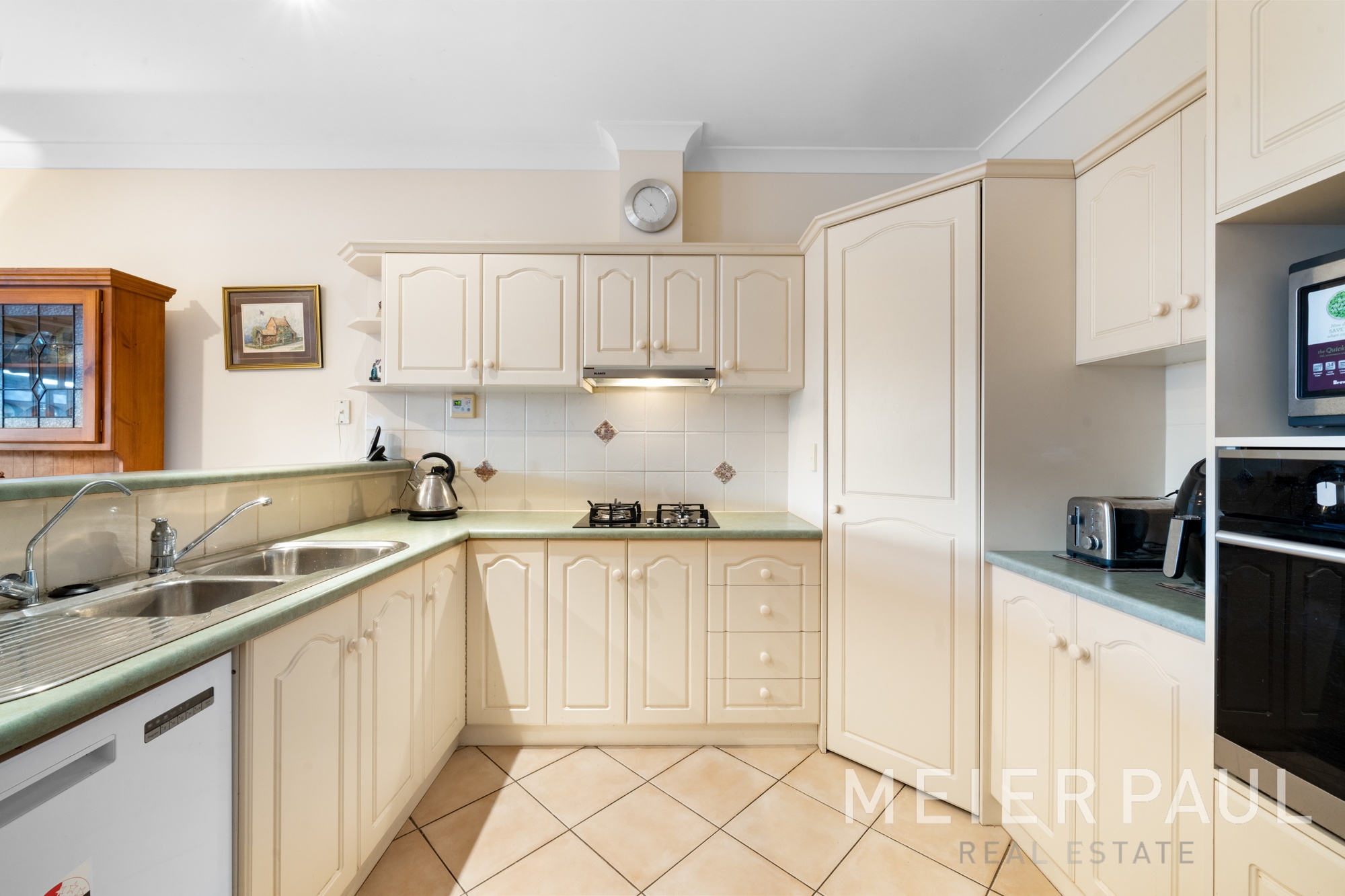 The kitchen is a culinary delight with stainless steel appliances, Fisher and Paykel gas cooktop and electric Blanco wall oven, a dishwasher, ample cupboards and bench tops and a pantry offering an abundance of storage and space.
