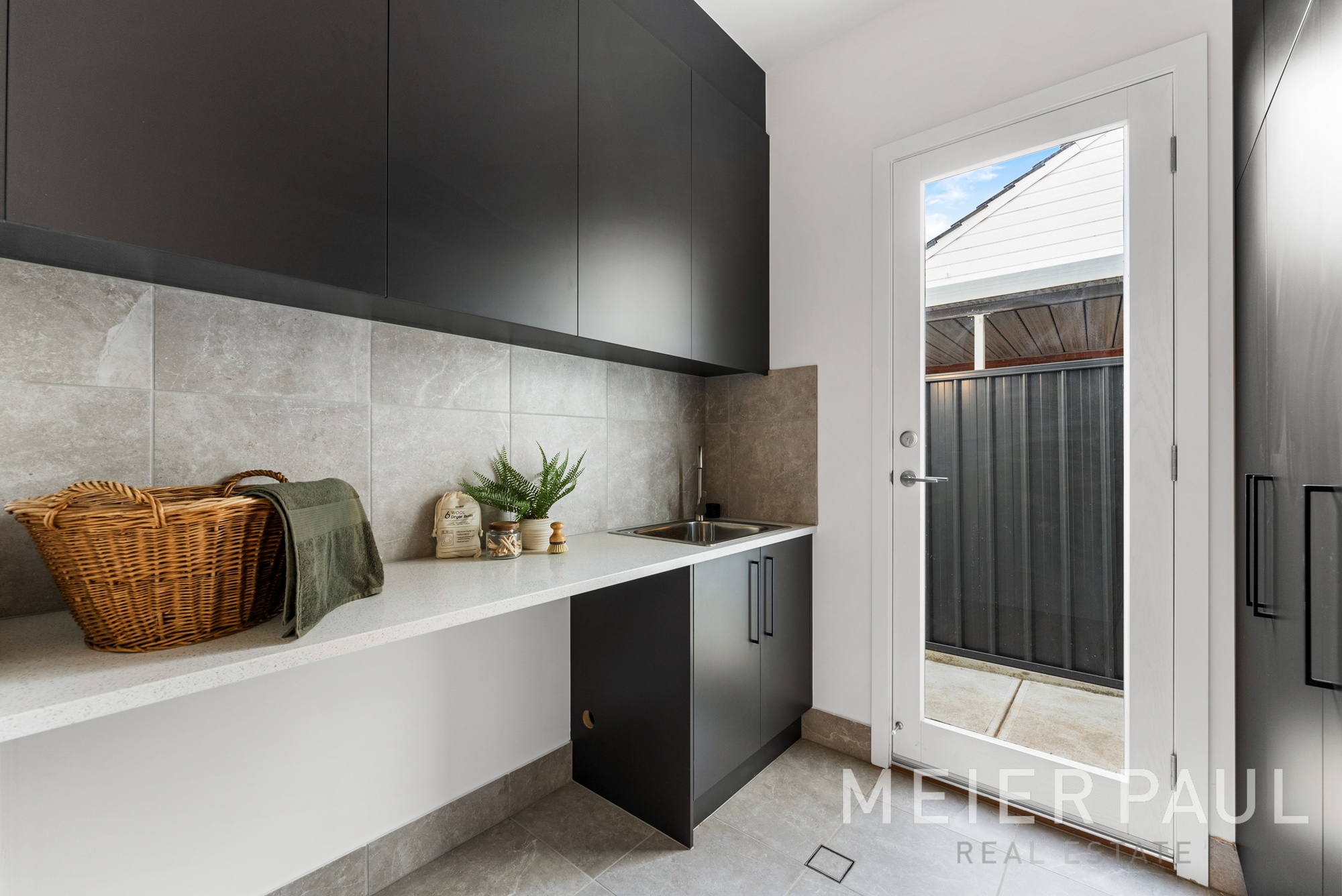 There is a guest bathroom with a shower & a large laundry with lots of storage.