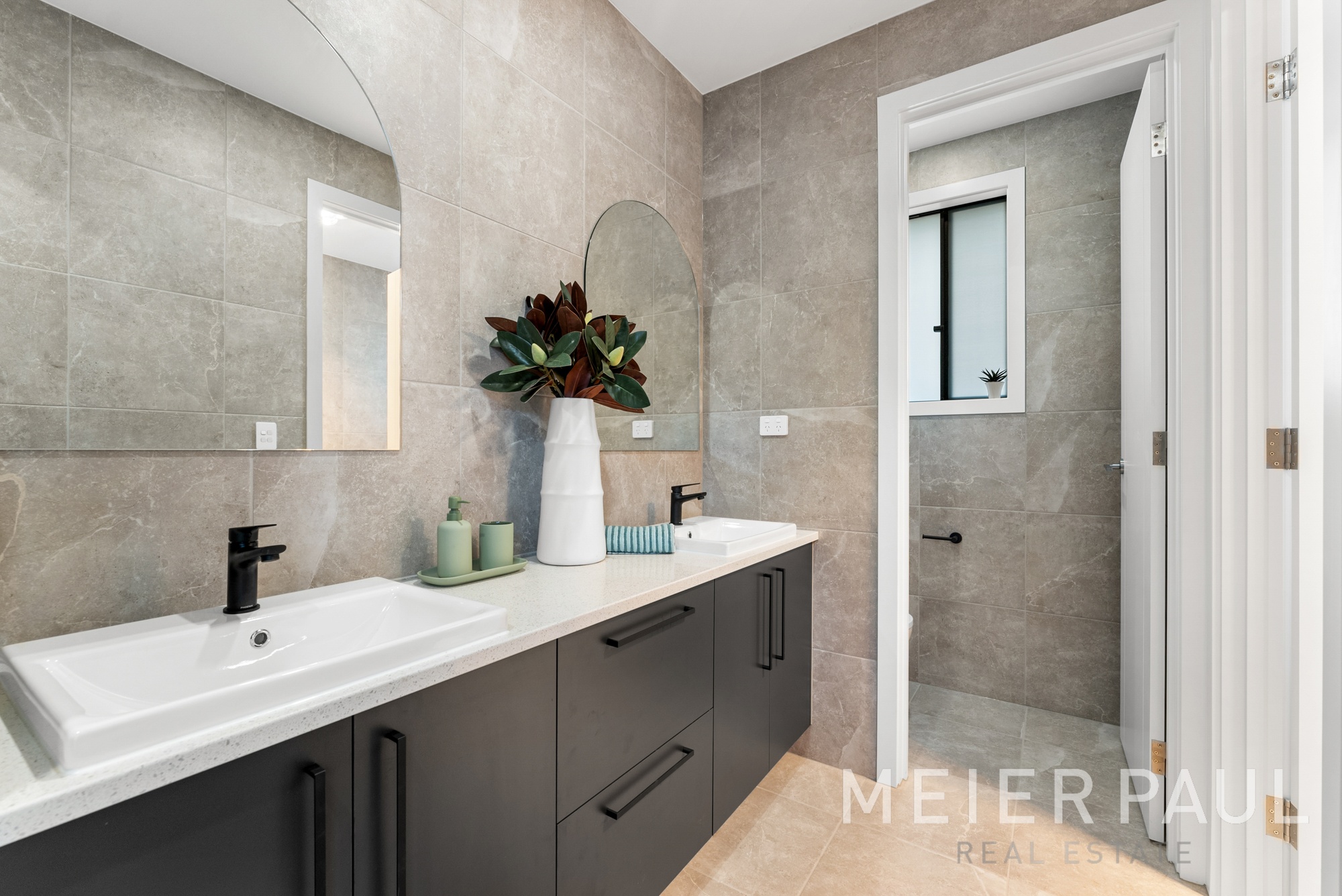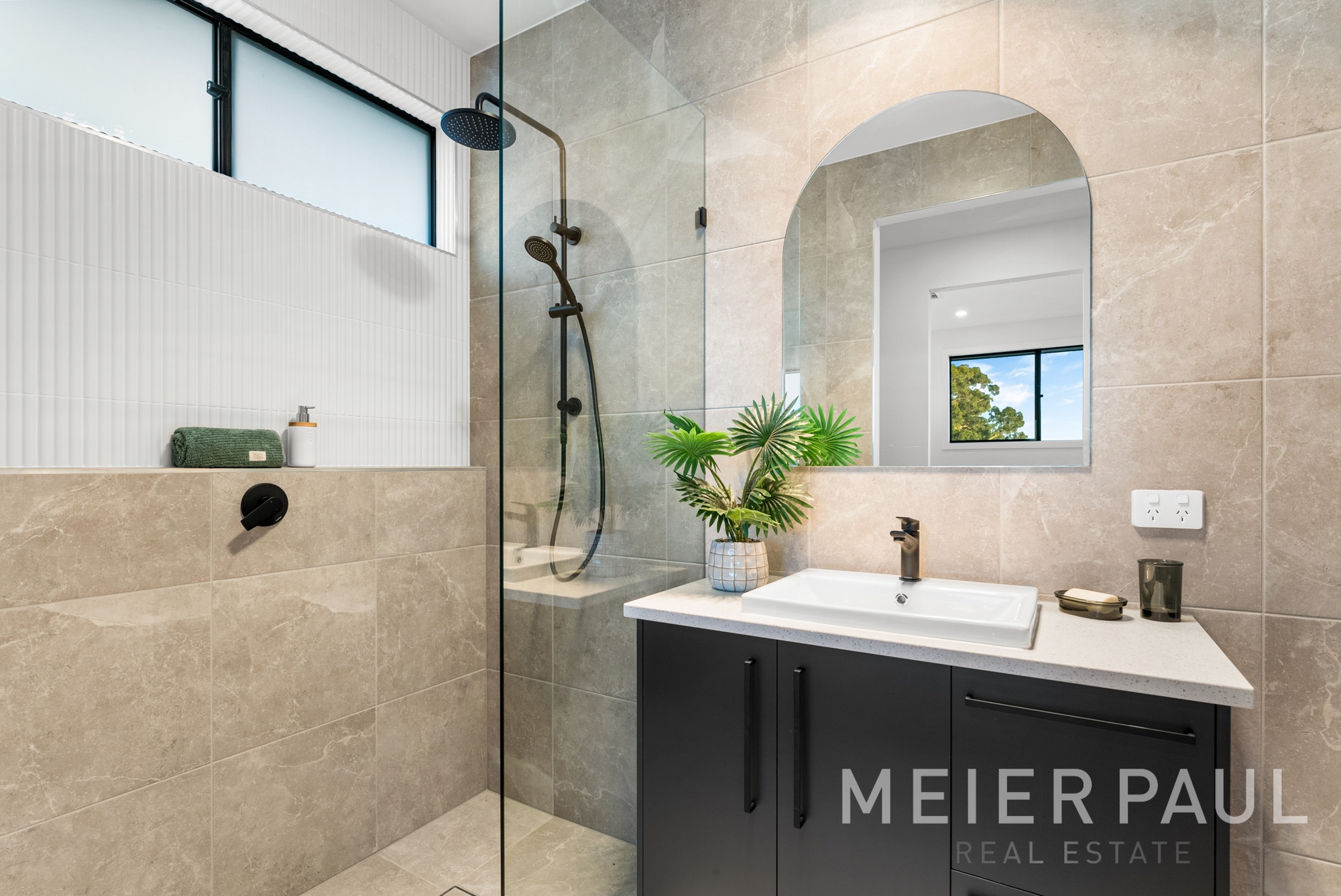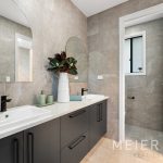 The comforting feel of a neutral modern colour scheme, stone surfaces with floating boards create an atmosphere of calming, modern luxury, while large-paned sliding doors afford airflow & a connection to the outdoors. As you look around at the quality & workmanship of the build, it is evident no expense has been spared.