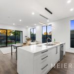 The impressive bespoke kitchen showcases sleek waterfall stone benchtops, the full complement of Bosch appliances, including a 1200m gas stove, electric oven & dishwasher. A butler’s pantry with ample storage provides for effortless meal preparation and presentation. Adjacent living & dining areas lead to an undercover terrace with a ceiling fan & barbecue area through double sliding doors, ensuring entertaining is at the forefront. The immaculate garden is low-maintenance & ideal to enjoy time with family & friends.